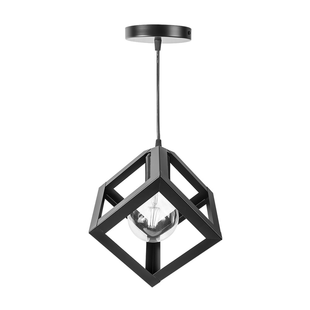 | Características | Lámpara colgante de diseño decorativo en forma cuadrada, conformado por material de acero fosfatizado, cuenta con cable de aproximadamente 1.40 m y regulable, además cuenta con rosca E27 para colocar el foco. |