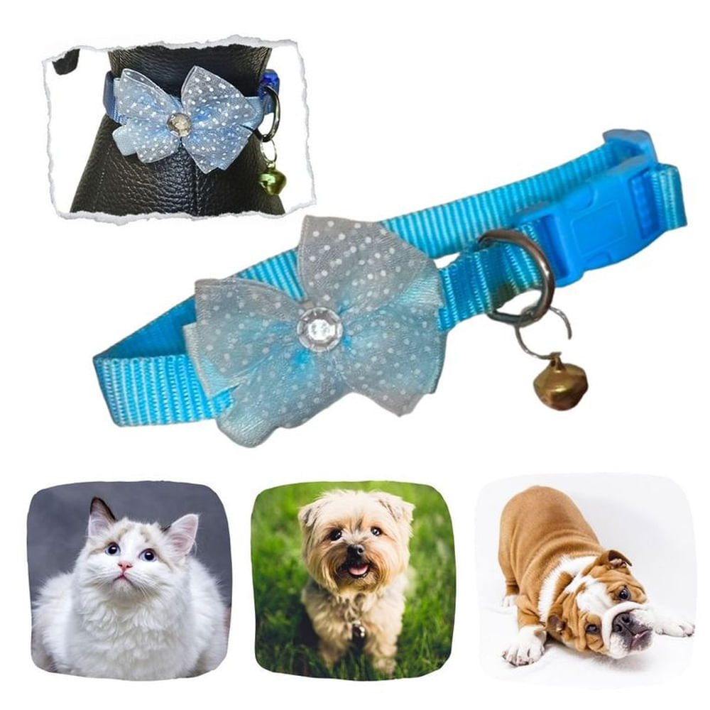 COLLAR ANCHO PARA MASCOTAS-MOÑO GRANDE Y CASCABEL CELESTE.