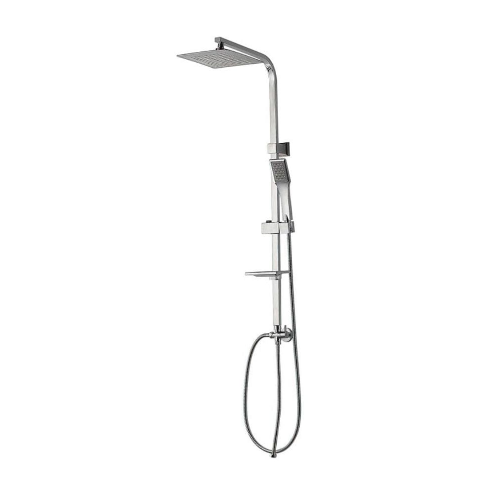 | Características | Columna de ducha básica hecho de metal en acabado cromado, cuenta con salida de ducha de 22 x 22 cms hecho de ABS, una ducha teléfono de ABS con manguera flexible de 1.50 m, conexiones aptas para agua fría, grifería simple (8"). |