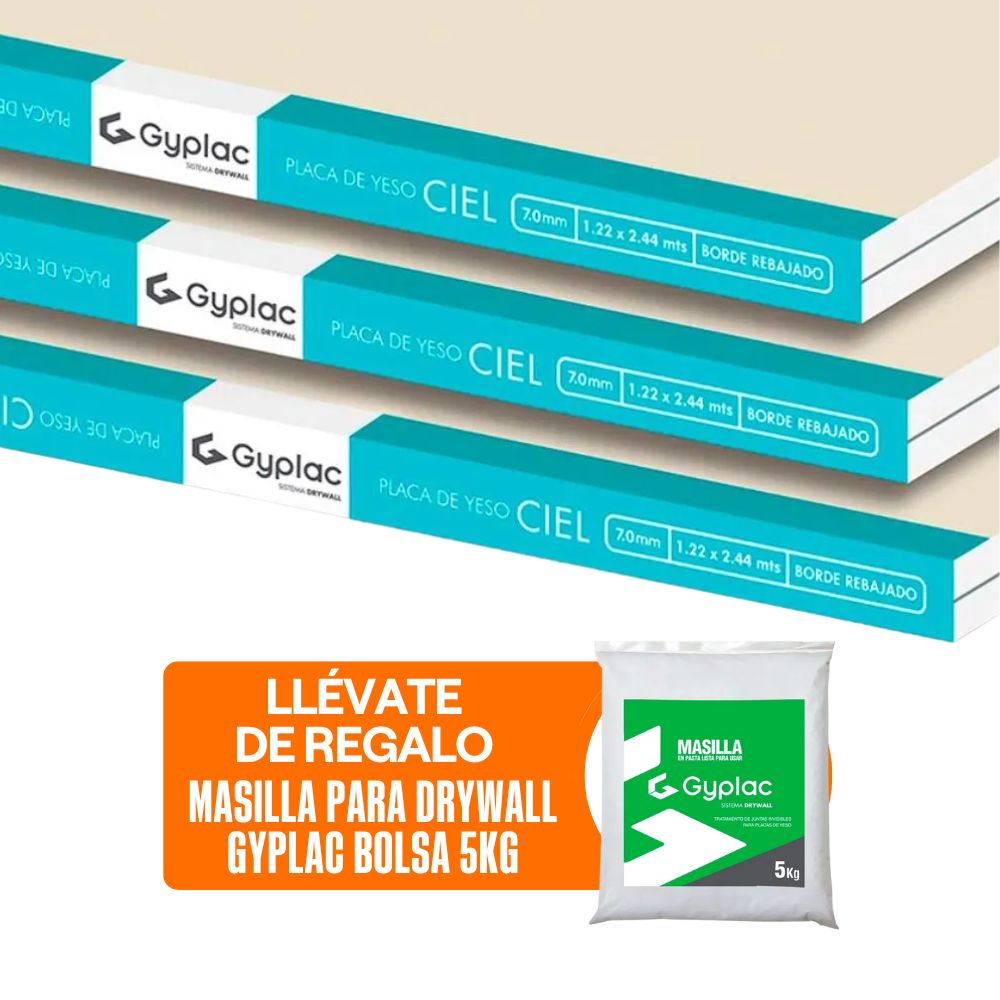 COMBO Gyplac: 6 Planchas de Drywall ST CIEL 7mm 1.22x2.44m + Masilla para drywall Bolsa 5kg