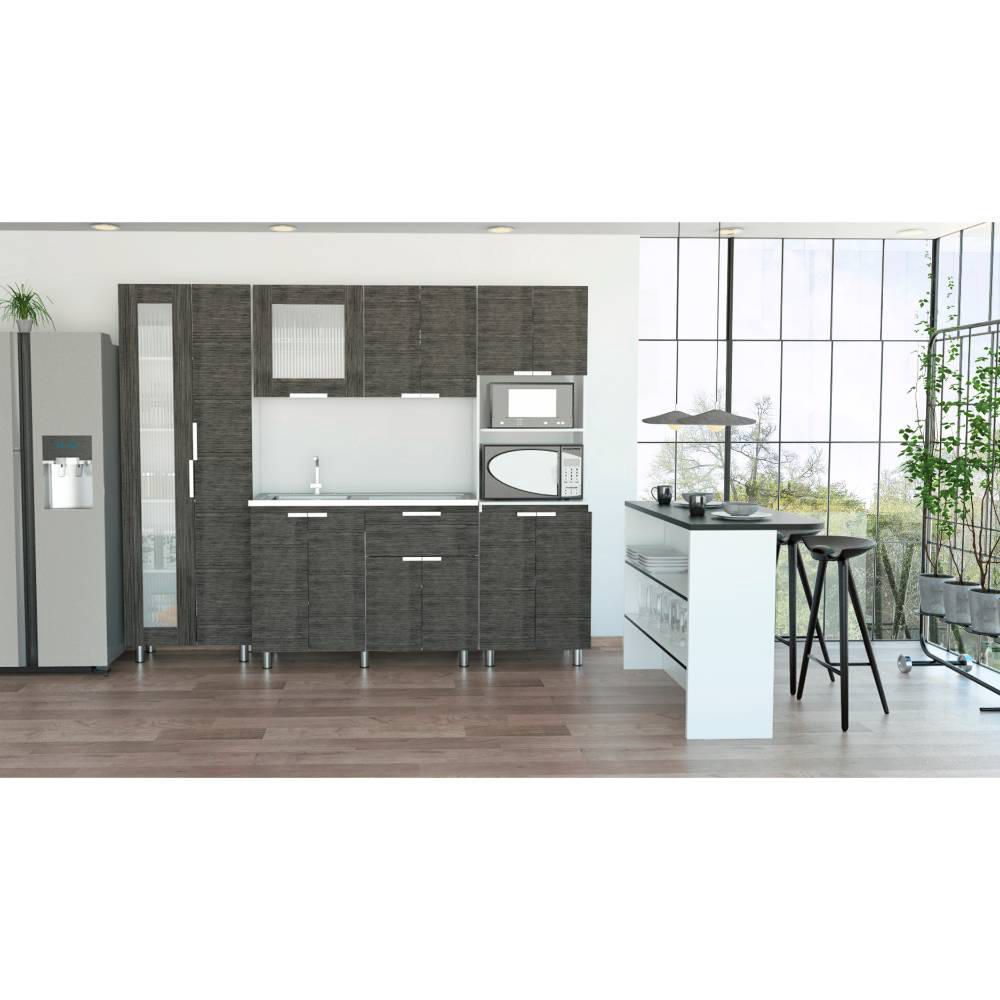 Combo 9 Fendi Muebles + Alacena + Microondas + Barra Auxiliar - Roble Gris/Wengue/Blanco