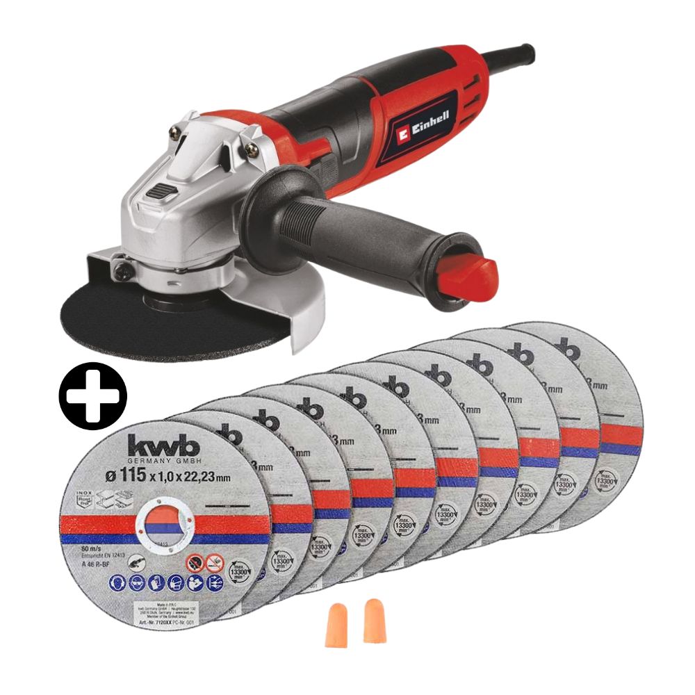 COMBO Amoladora 4 1/2" 850w Tc-ag 125 Einhell + 10 discos de corte metal 115x1,0mm KWB