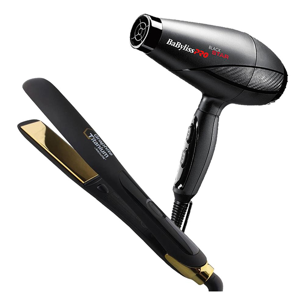 Combo BabylissPRO Alisadora Graphite Titanium BGT183PE y Secador Black Star B6200PE