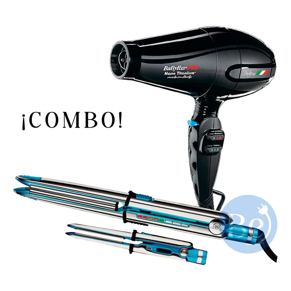 Combo BabylissPRO Planchas Profesionales BNTPK1PE y Secador Portofino Negro BNT6610NPE