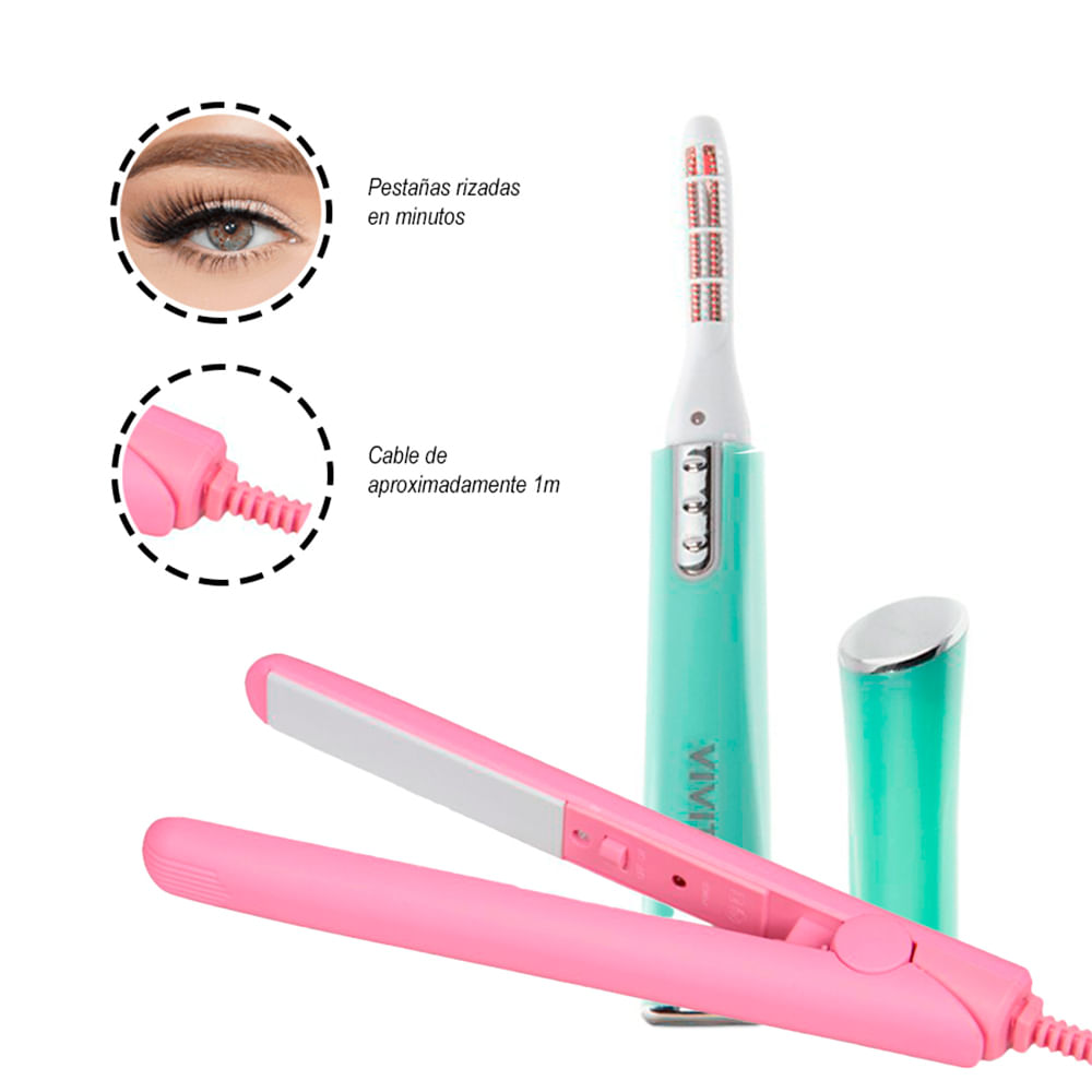 Combo Belleza: Mini Plancha Portatil con Estuche Protector+Rizador Levanta y Unifica Pestañas