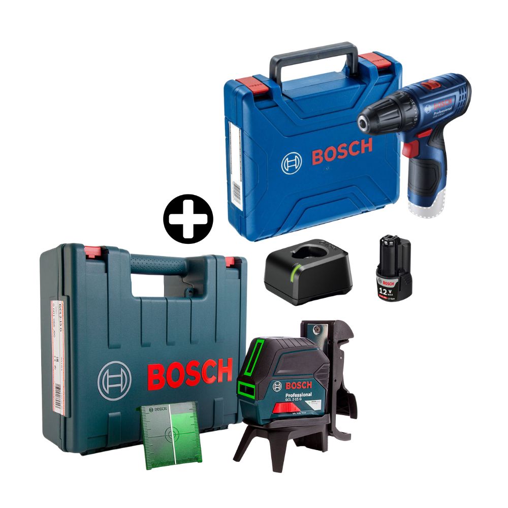 COMBO Bosch: Atornillador 12V GSR 120 + 1 Batería + Nivel Láser GCL 215G Verde Profesional