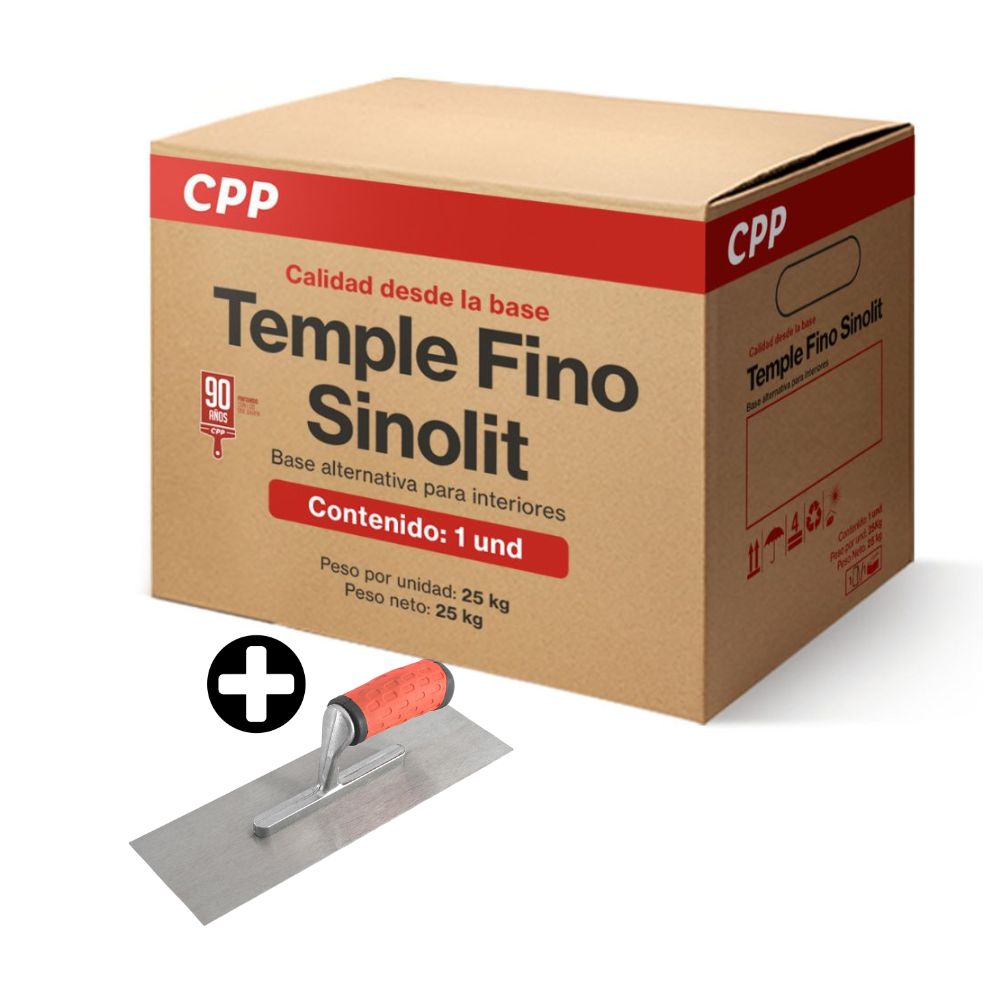 COMBO Caja de Temple fino Sinolit Blanco 25kg CPP + Llana Delgada Werken Modelo GSPE058 Plata 12x4'