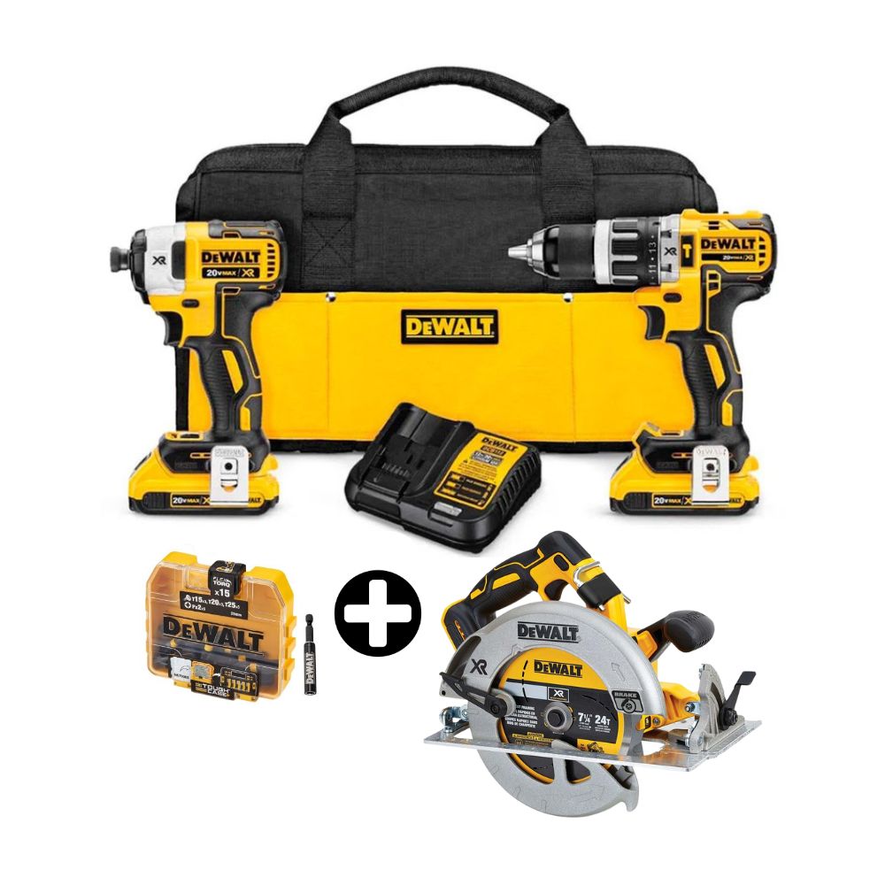 COMBO Dewalt: Taladro Percutor DCD796 1/2" + Atornillador de Impacto DCF887 1/4" 20V + Sierra Circular 7-1/4" 20V BRUSHLESS DCS570B (Sin Bateria)