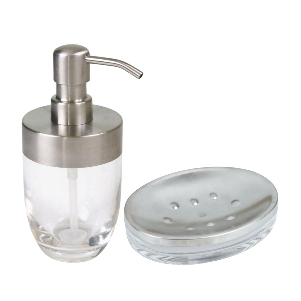 COMBO Dispensador de jabón Acrox Transparente Orange + Jabonera Acrox Transparente Orange