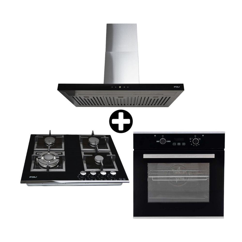 COMBO Encimera empotrable Fdv Black 60 + Campana decorativa Fdv Deluxe Smart Pro 60 + Horno empotrable Fdv Gas Glp Black 56 litros