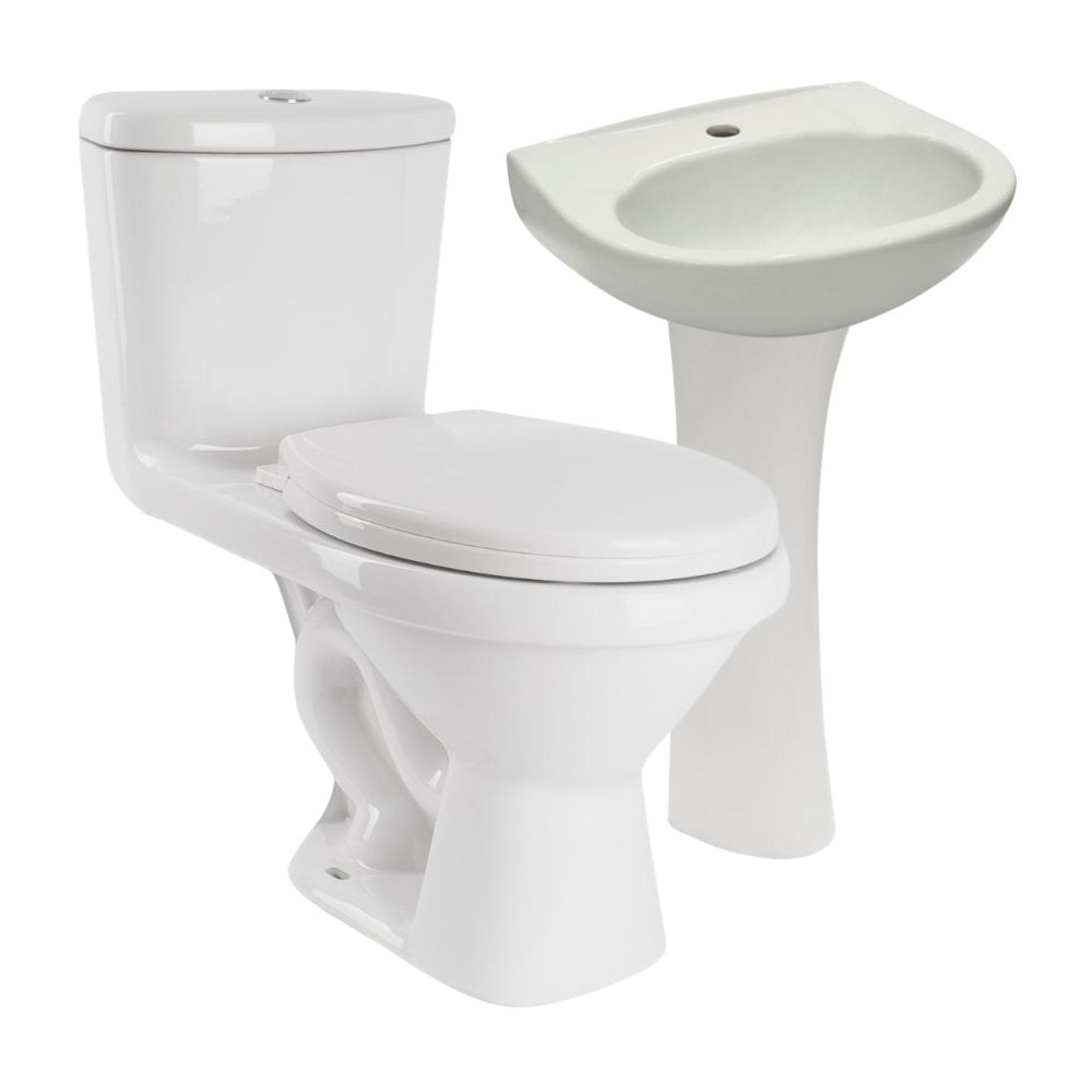 COMBO Inodoro One Piece Trebol Eco PS AS SD Blanco + Lavatorio Trebol Máncora Blanco + Pedestal Trebol Universal Blanco