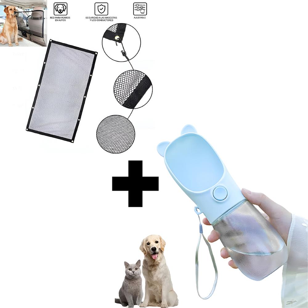 Combo malla de seguridad para auto + bebedero dispensador de agua Azul