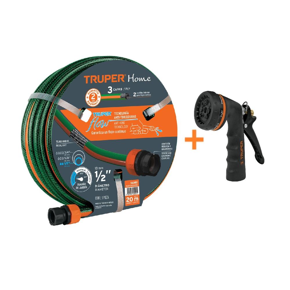 Combo Manguera de Riego 1/2" 20 Metros y Pistola de Riego Metálica Truper