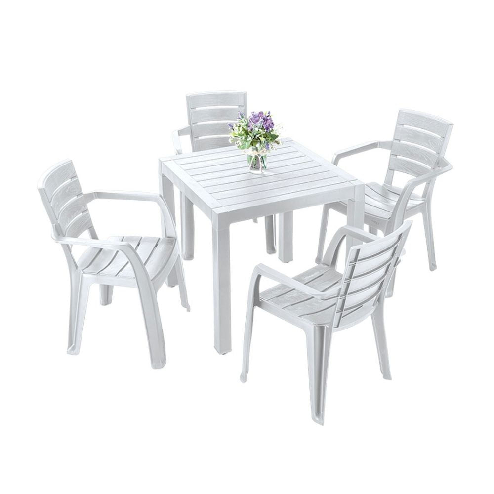 COMBO Mesa de Terraza Cuadrada Baru Gris Rimax + 4 Sillas de Terraza Baru con brazos Gris Rimax