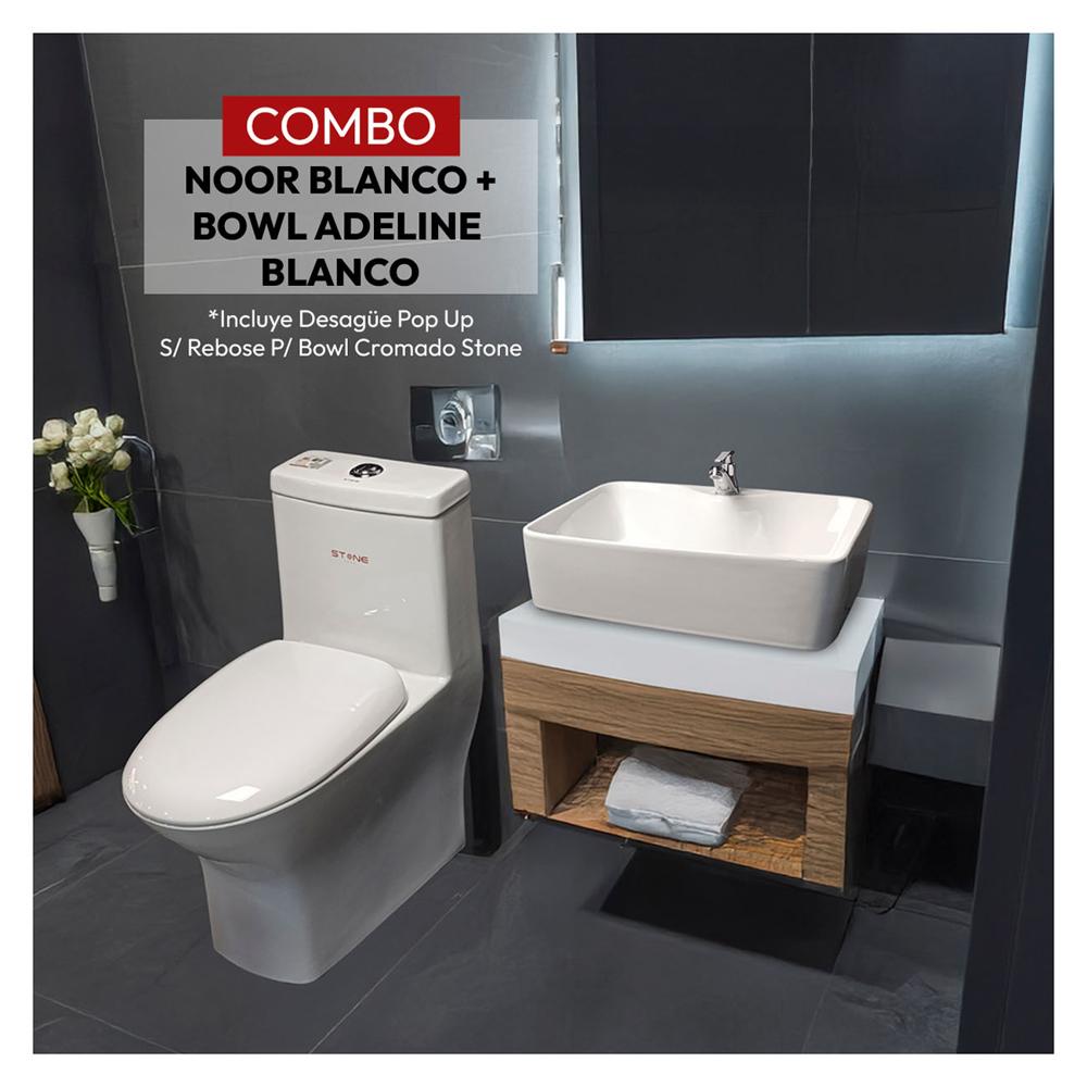 Combo Noor Blanco + Bowl Adeline Blanco + Desagüe Pop Up S/Rebose P/Bowl Cromado - Stone