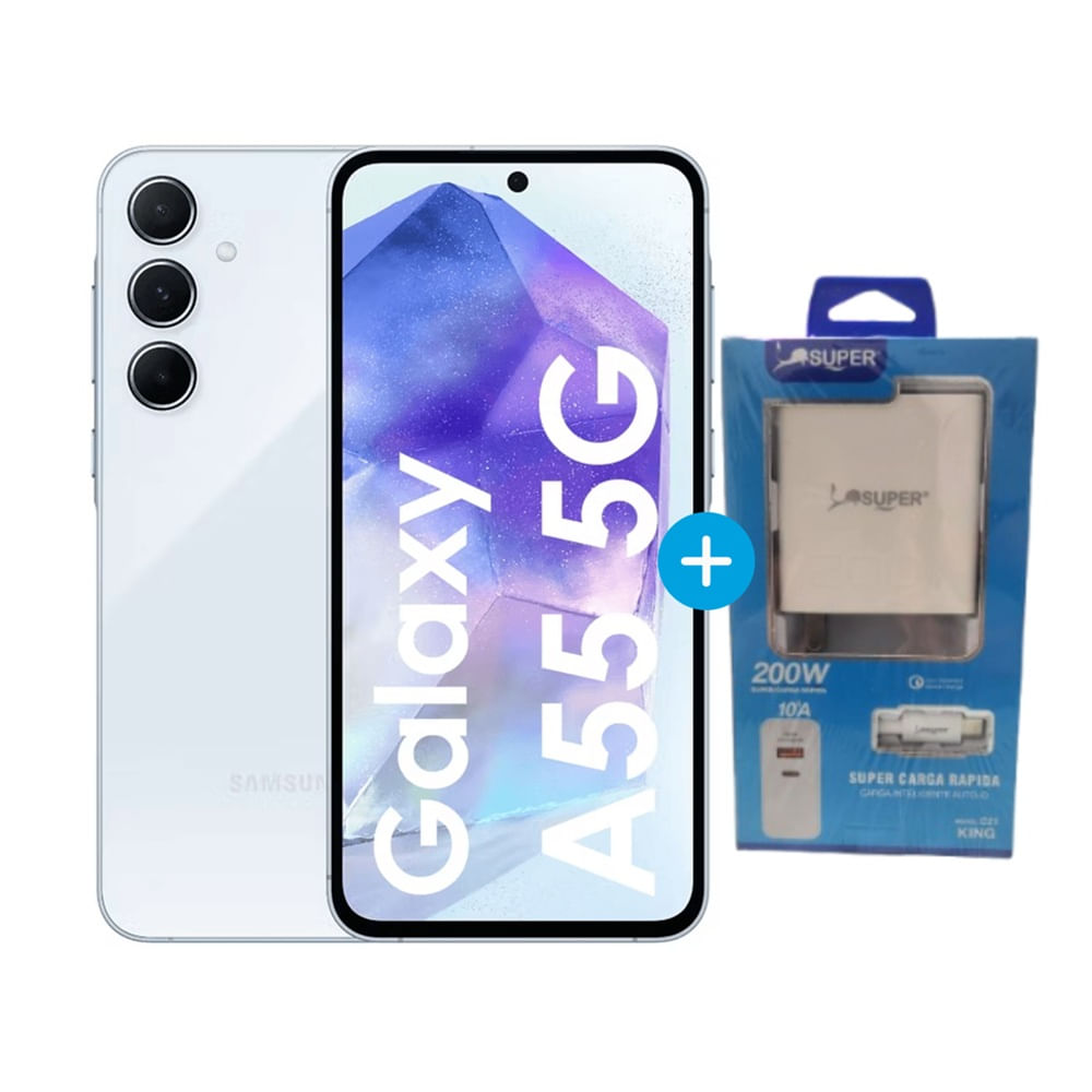 Combo Samsung Galaxy A55 5G 256GB 12GB y SUPER CARGA RAPIDA 200W