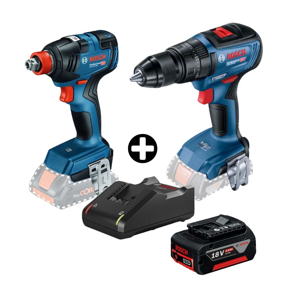 COMBO Taladro Atornillador 18V GSB 18V-50 + Llave de impacto inalámbrica 18V GDX 18V-200 + Batería Gba 18V 4.0 Ah + Cargador Gal 18V-40 Bosch