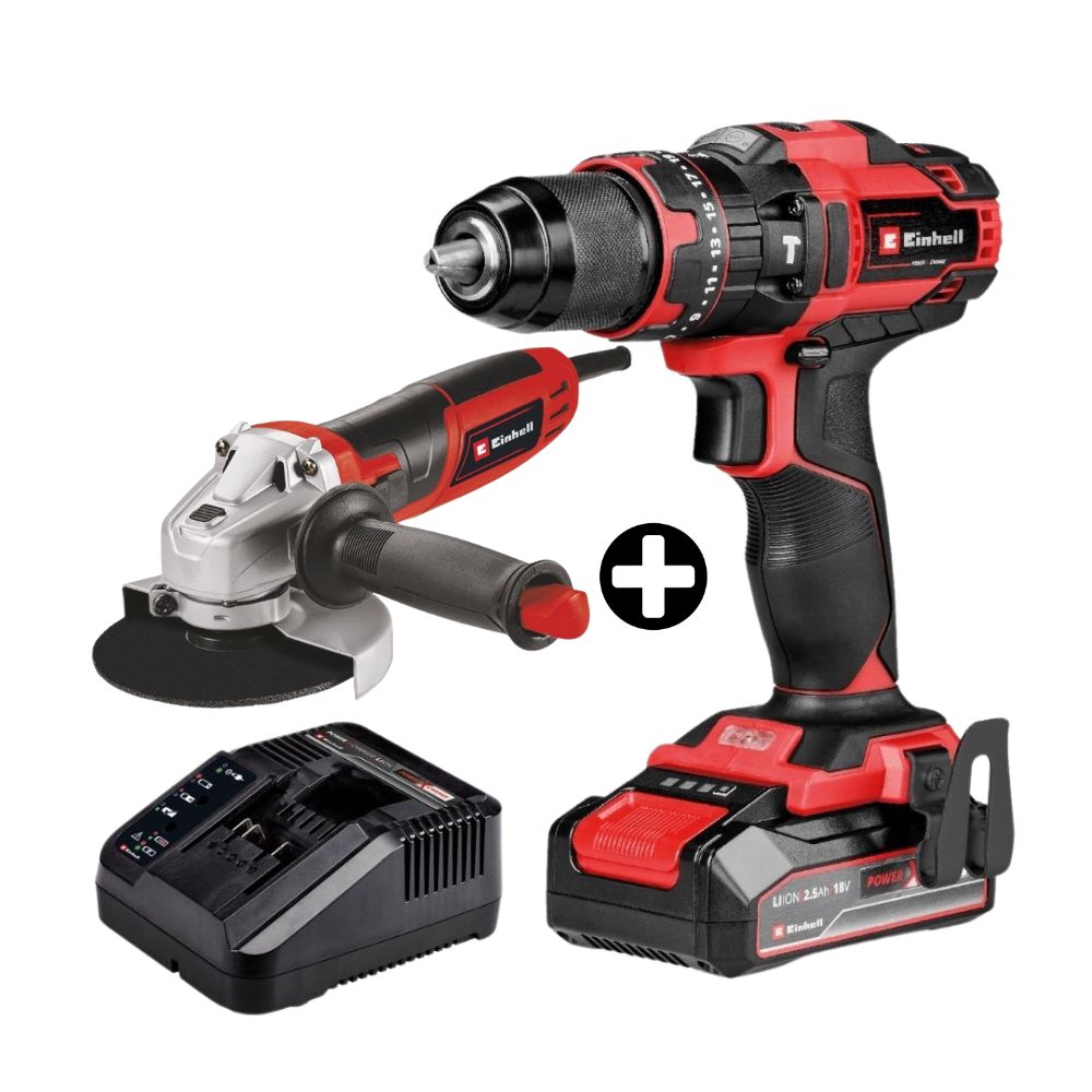 COMBO Taladro Percutor Inalámbrico Einhell TE-CD 18/44 Li-i + Bateria 2.5 Ah + Amoladora 4 1/2" 850w Tc-ag 125 Einhell