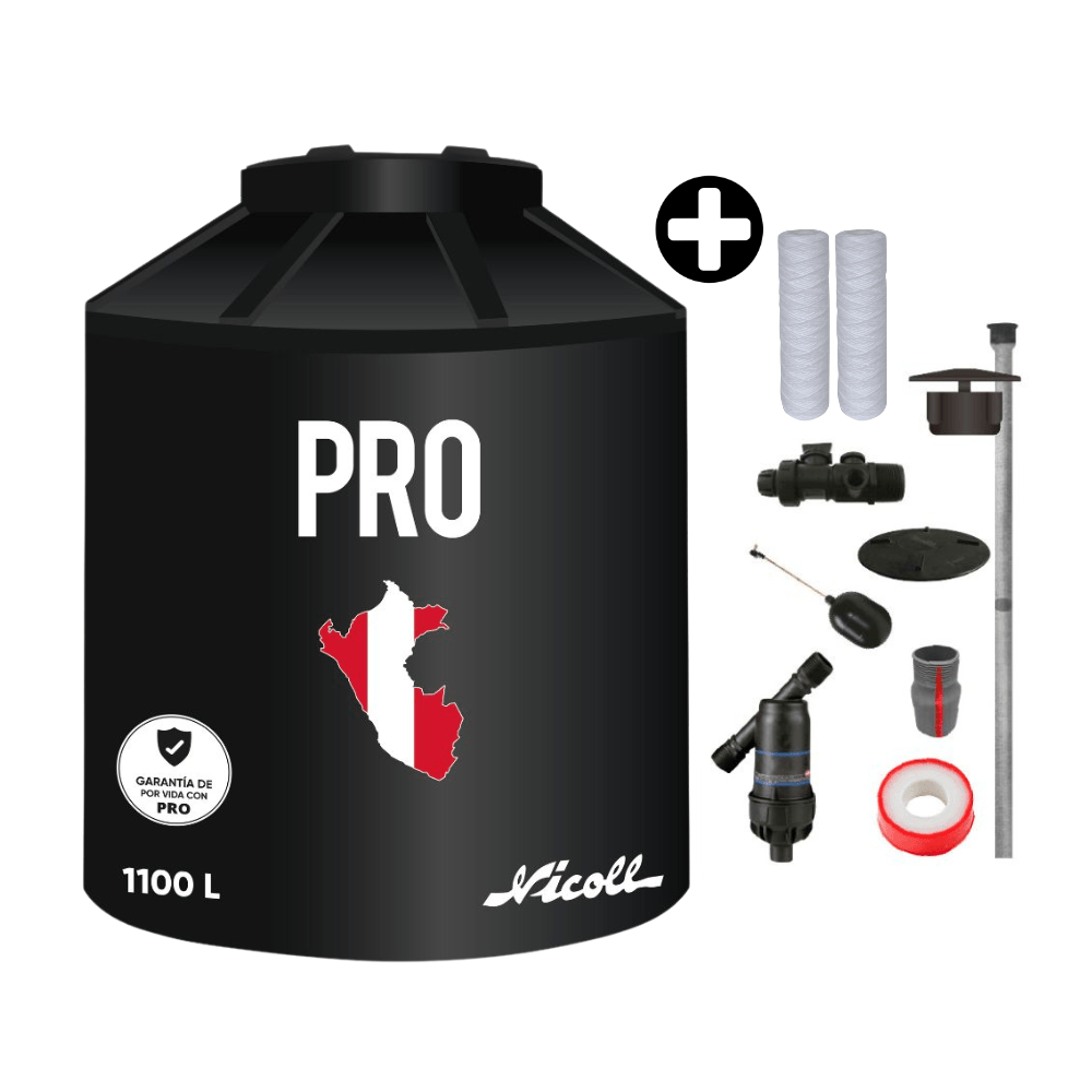 COMBO Tanque de agua Pro 1100 litros Negro + Kit de Accesorios + 2 Cartuchos Repuesto Filtro De Sedimentos 5u Agua Vida