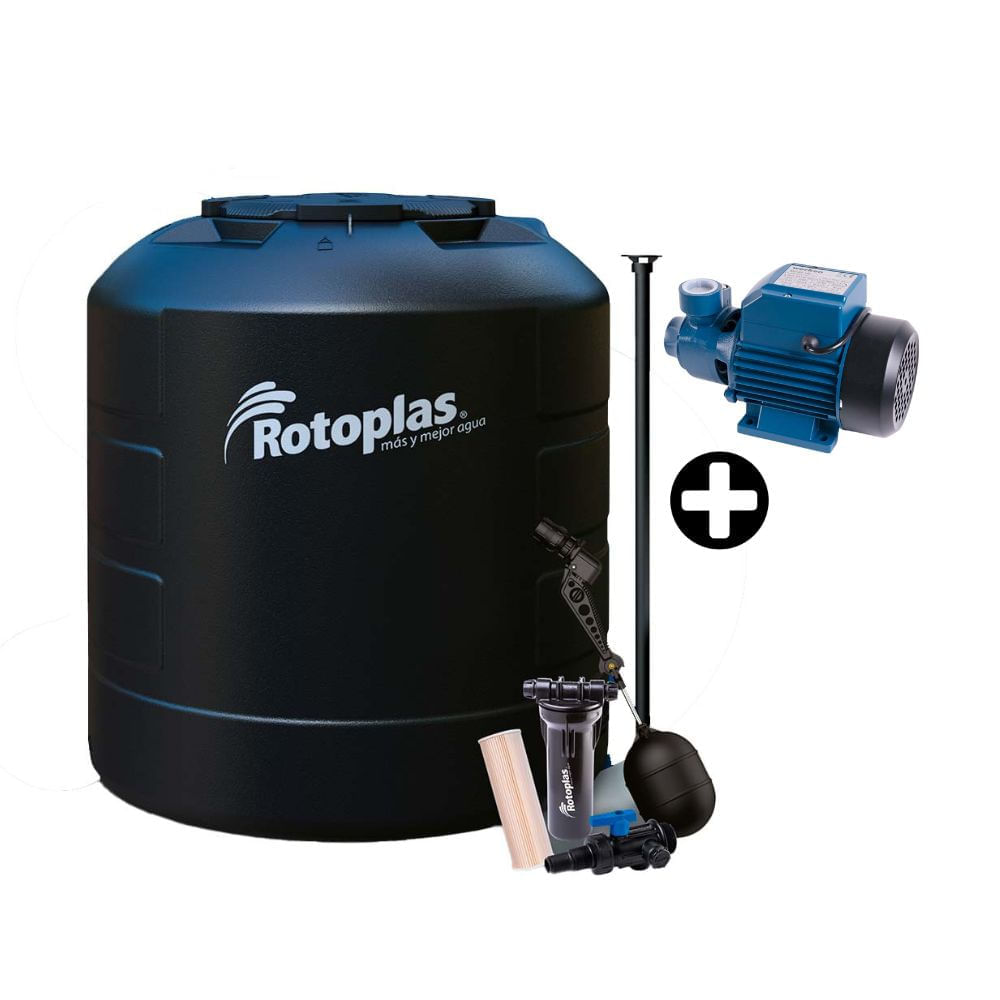 COMBO Tanque de Agua Rotoplas Negro Plus 1100 litros + Kit de Accesorios + Electrobomba Periférica Werken 1 HP XKM80-1 40L/min