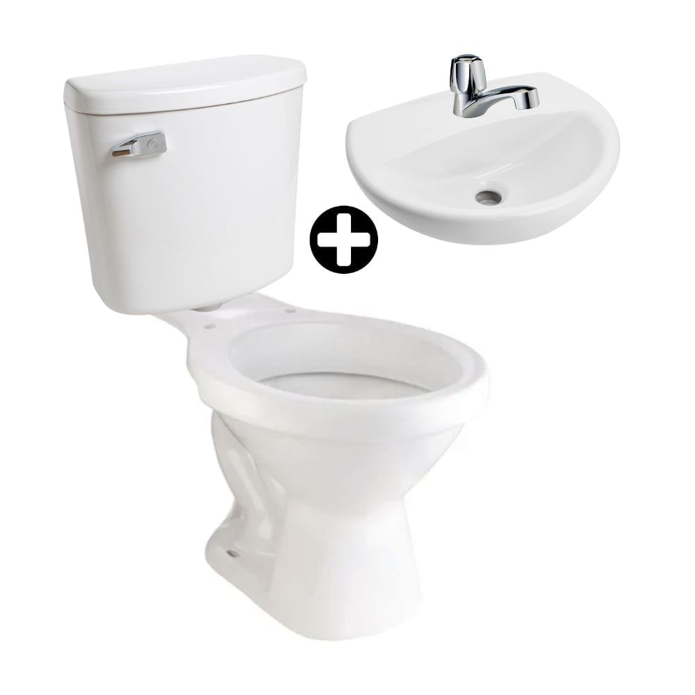 COMBO Trebol: Taza Universal Blanco + Tanque para inodoro Rapid Jet Plus Blanco + Lavatorio Fontana Blanco + Llave de Lavatorio Grazia Baja Plata