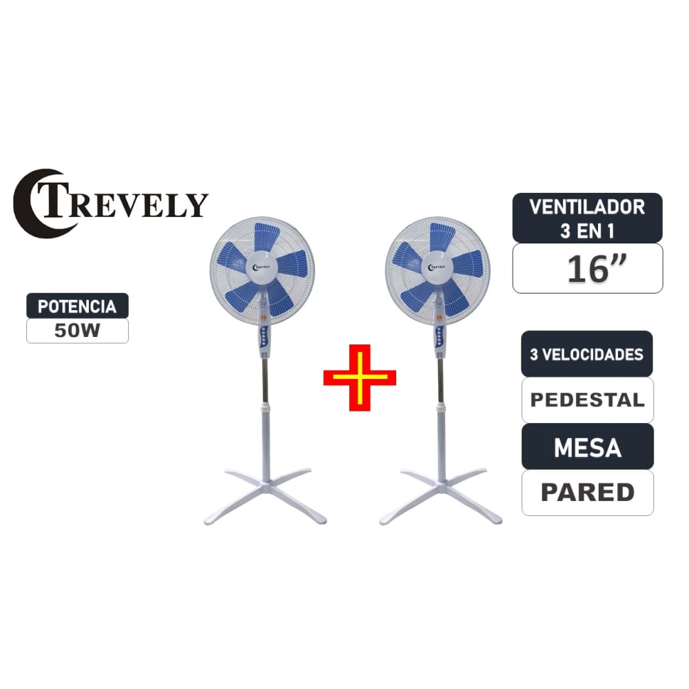 Combo Ventilador 16 pulgadas 3 en 1 TREVELY VT-1610 azul 50W