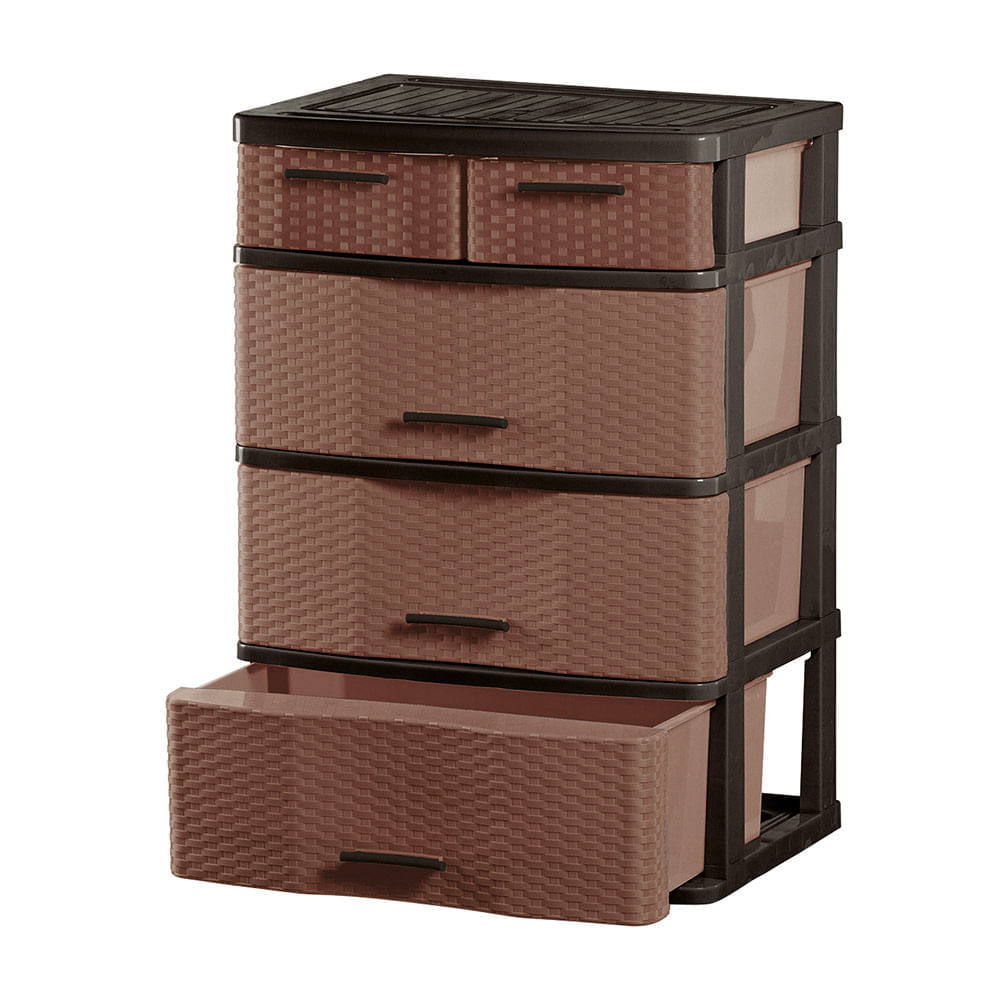 Cómoda Comodina Mimbre Ratán #4 Marrón Cerezo Polinplast