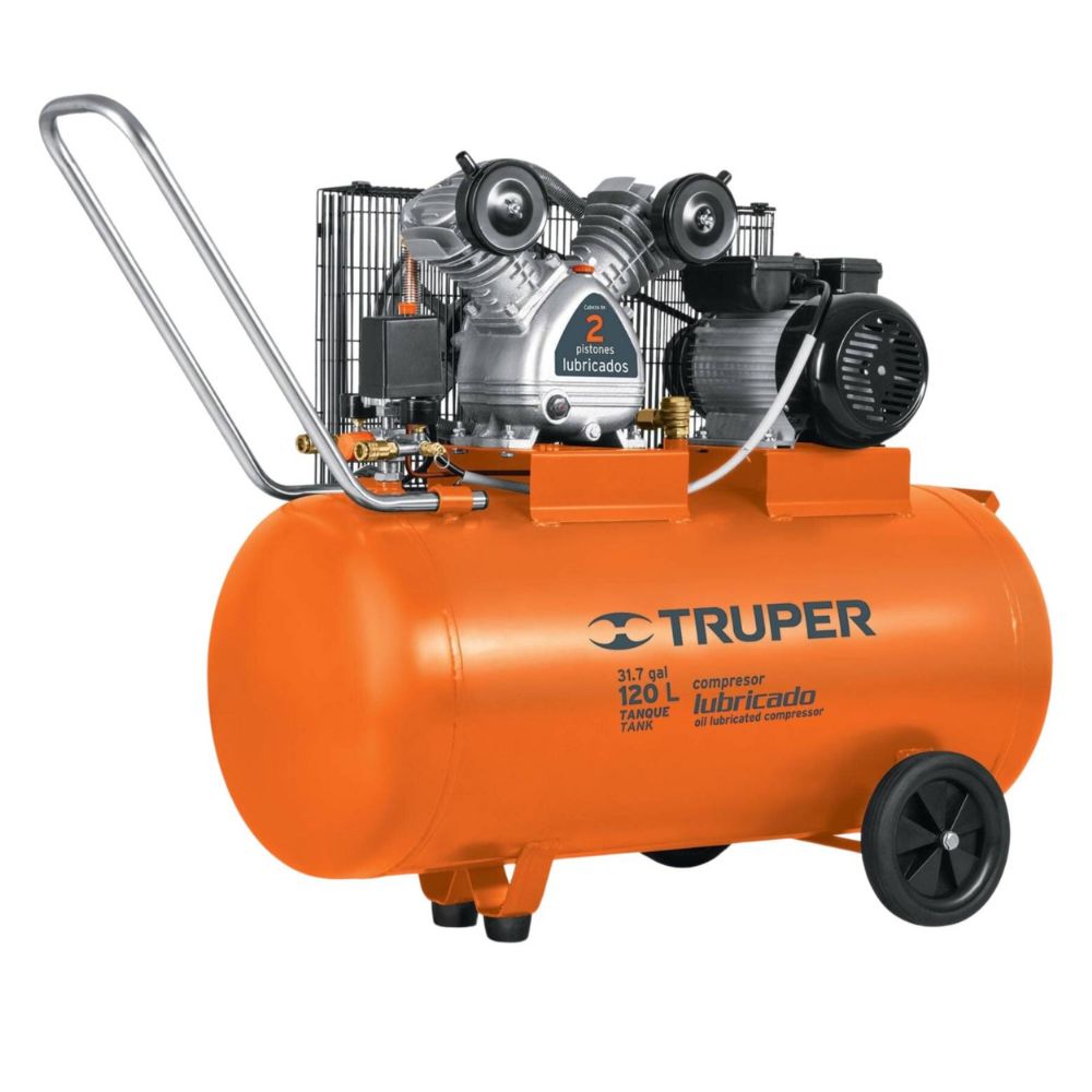 Compresora de aire 120L 4 HP, horizontal lubricada de banda, TRUPER