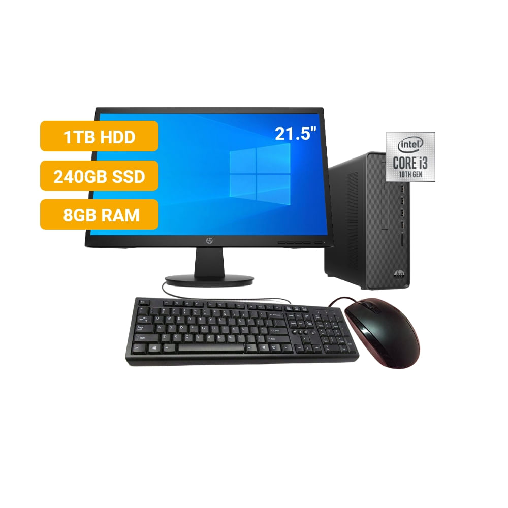 Computadora HP Core i3-10100 8GB RAM 1TB HDD + 240GB SSD 21.5" FHD Windows 10 Home