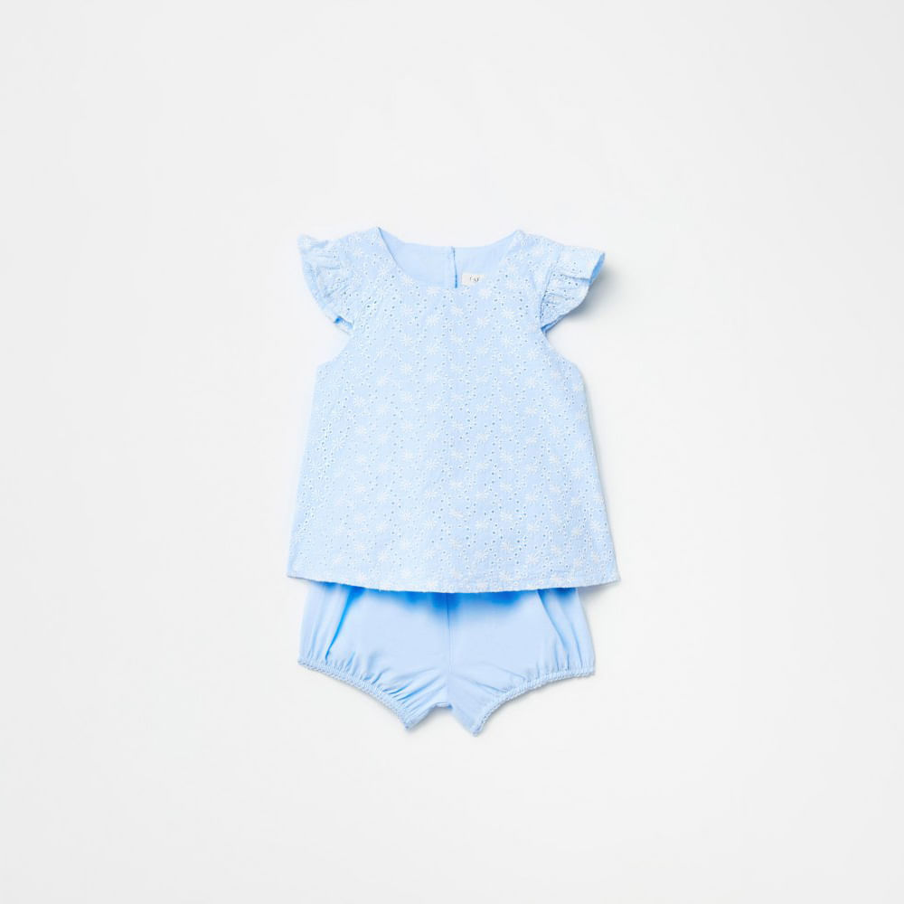 Conjunto Sfera Bebé Niña Enterizo Tejido Azul Claro