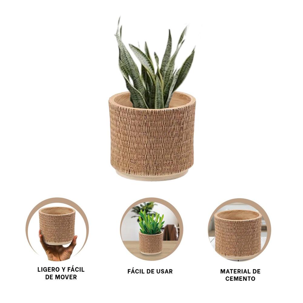 Contenedor Moderno Cemento 13x13cm Mostaza Tejido Rafia Para Oficina Y+Ligas Regalo