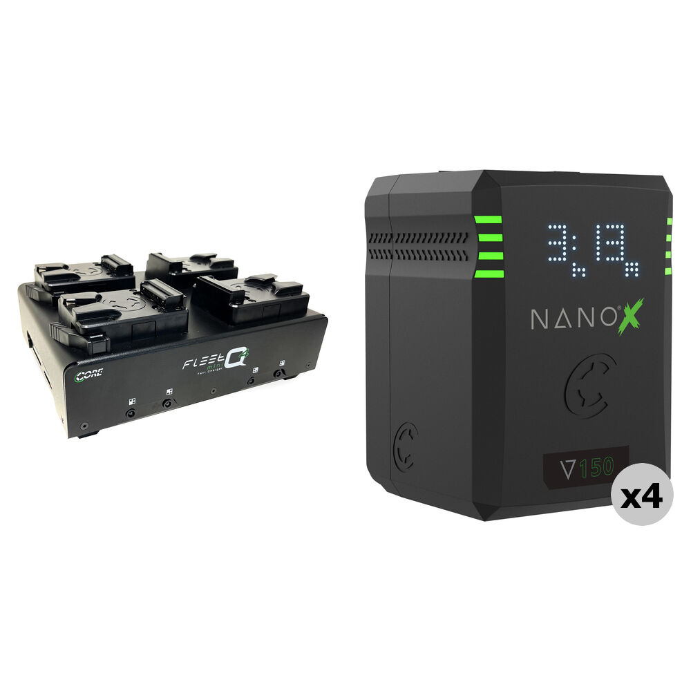 Core SWX 4 x Baterías NANOX 150Wh V-Mount + Kit de Cargador Cuádruple Fleet Q4 (Ultracompacto, Sali