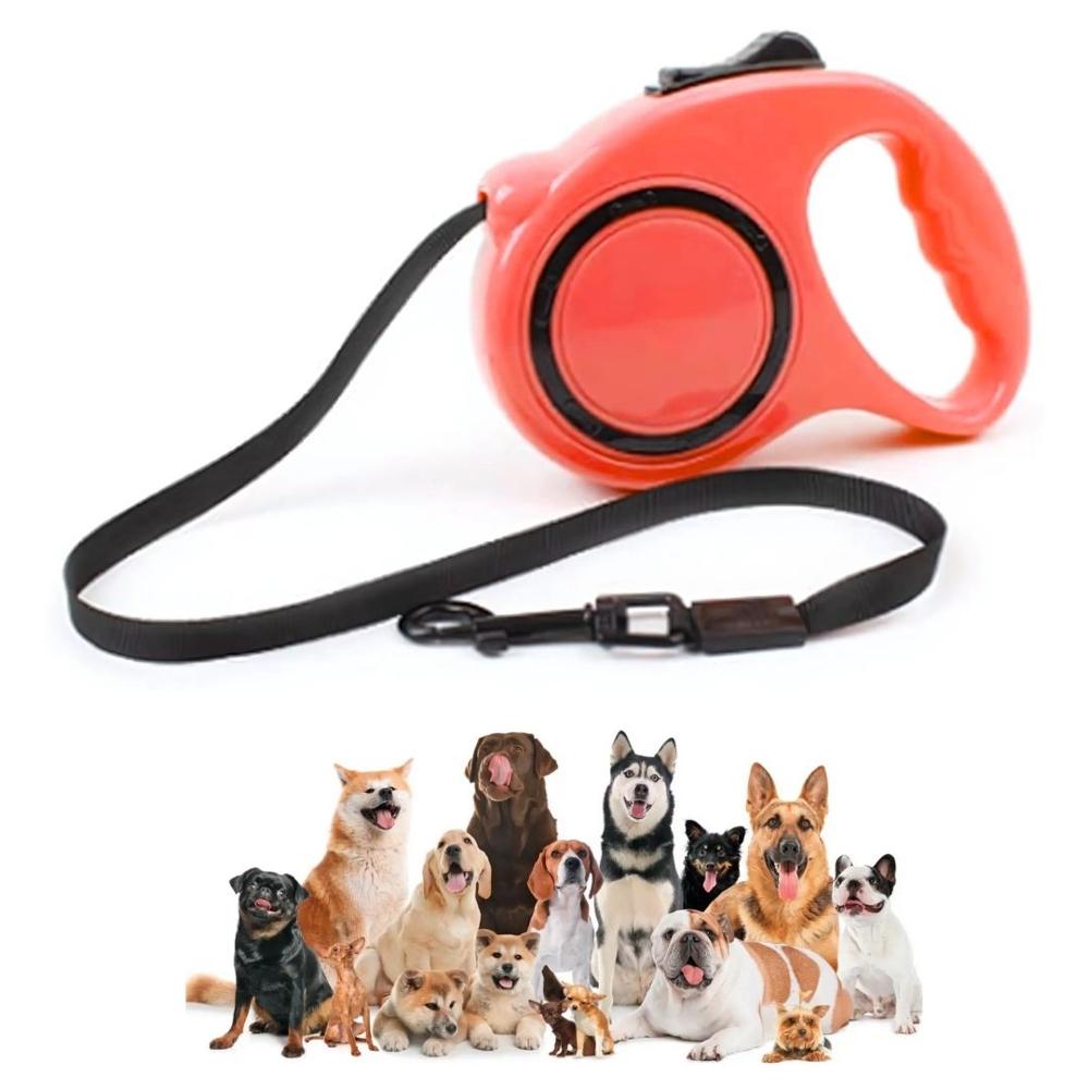 Correa Retráctil Automática para Mascotas Perros y Gatos 5 metros Rojo