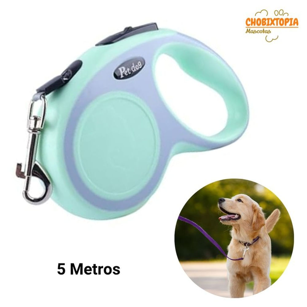 CORREA RETRACTIL DE POLIESTER PARA MASCOTAS VERDE 5M