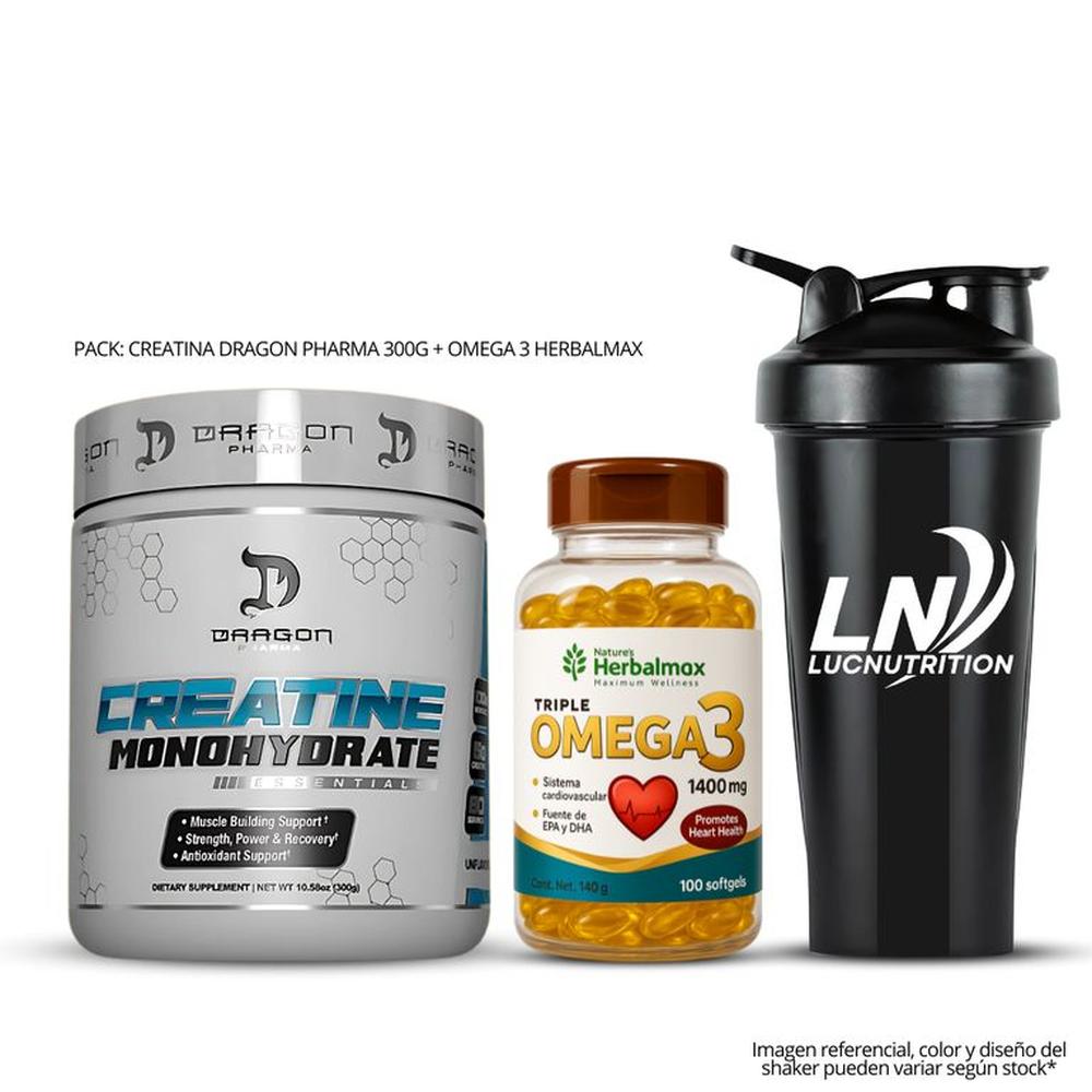 Creatina Dragon Pharma 300 G + Omega 3 Herbalmax 100 cap + shaker