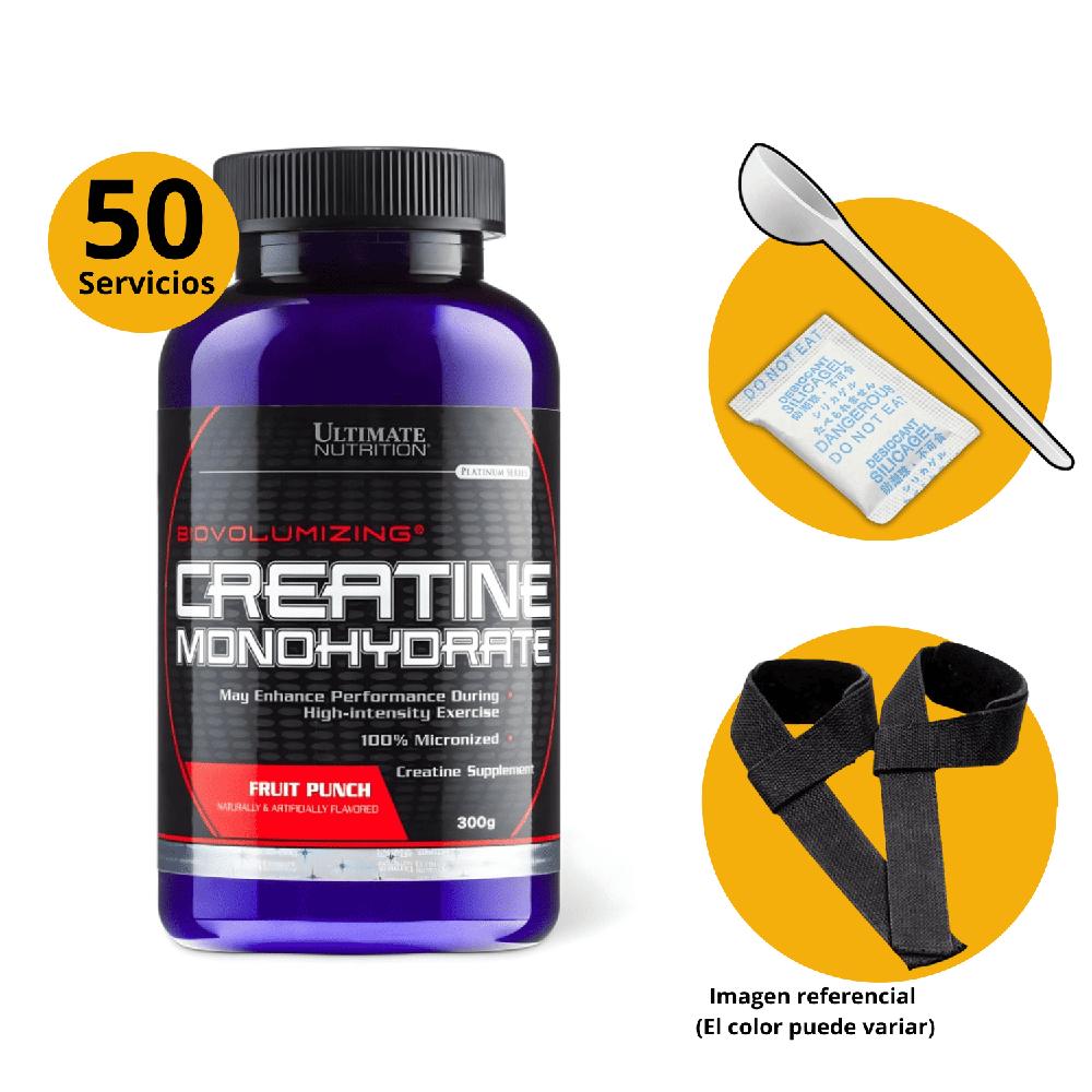 Creatina Ultimate Nutrition Fruit punch 300gr Monohidratada Micronizada y Straps