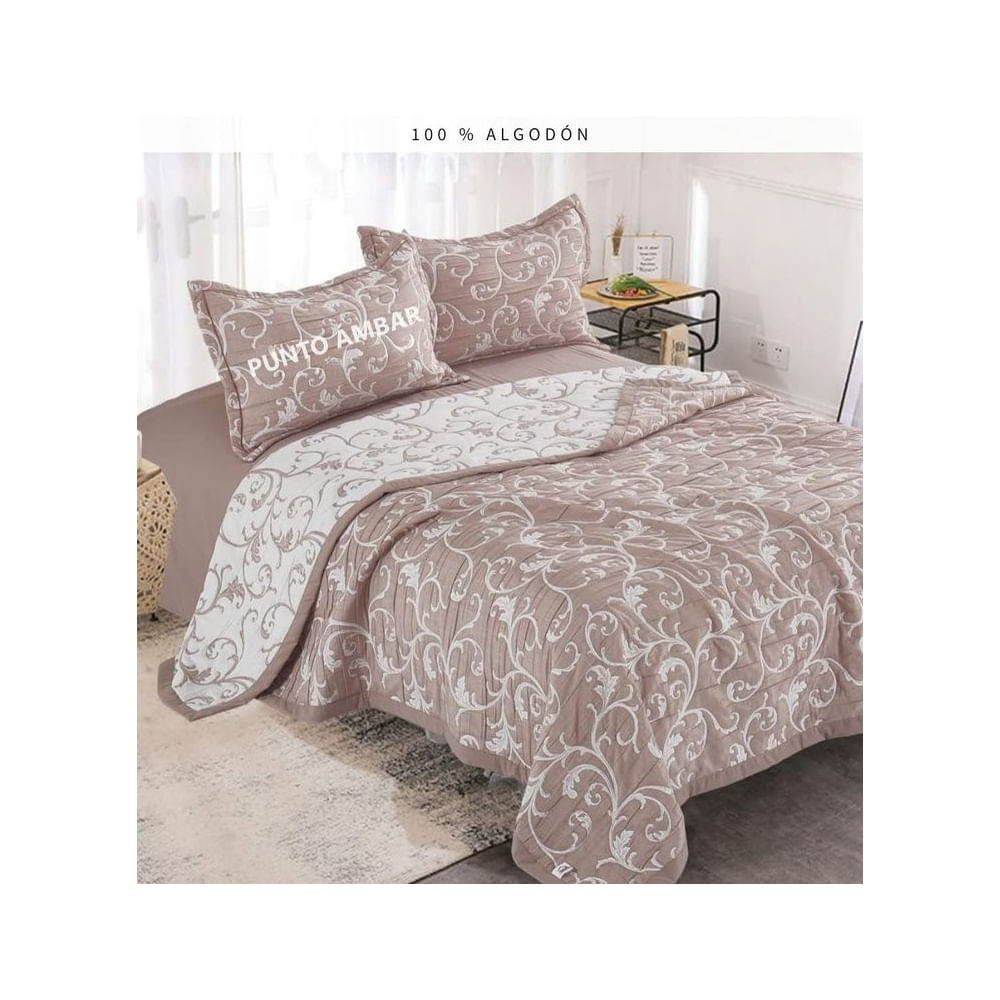 Cubrecama Bordado + Juego de Sábanas Queen 100% Algodón Multicolor