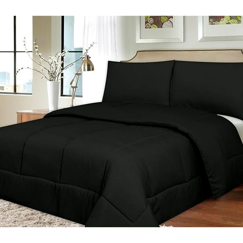 Cubrecama De Verano Plaza Y Media Interiotex 144 Hilos Cuadros Negro