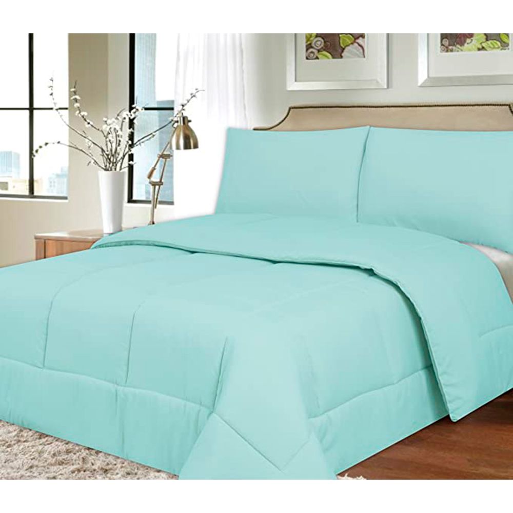 Cubrecama De Verano Queen Interiotex 144 Hilos Cuadros Aquamarina