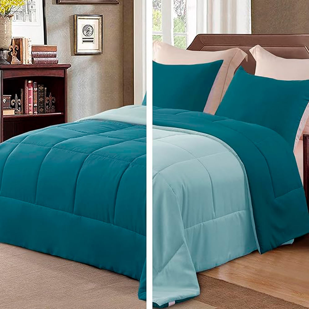 Cubrecama De Verano Queen Interiotex 144 Hilos Cuadros Aquamarina Con Verde Clinico