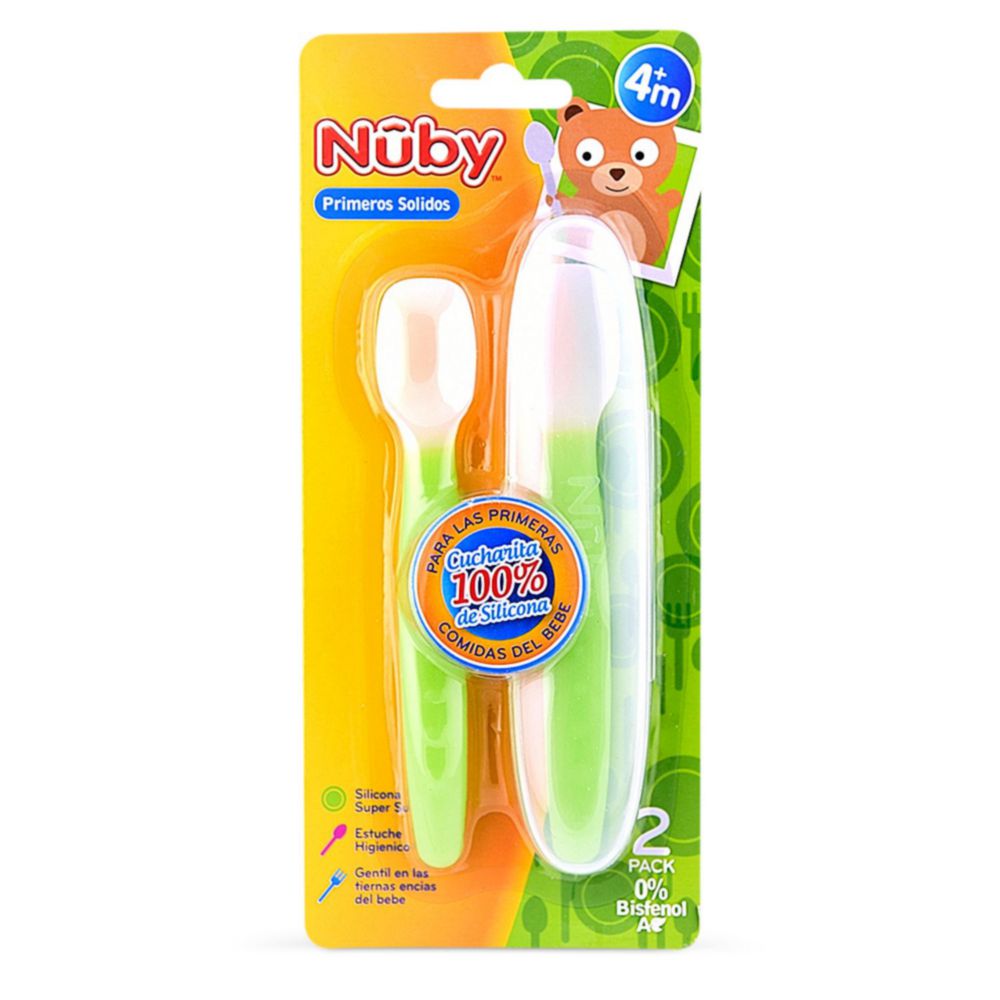 Cuchara de Silicona para Bebé Nuby Con Cajita Verde