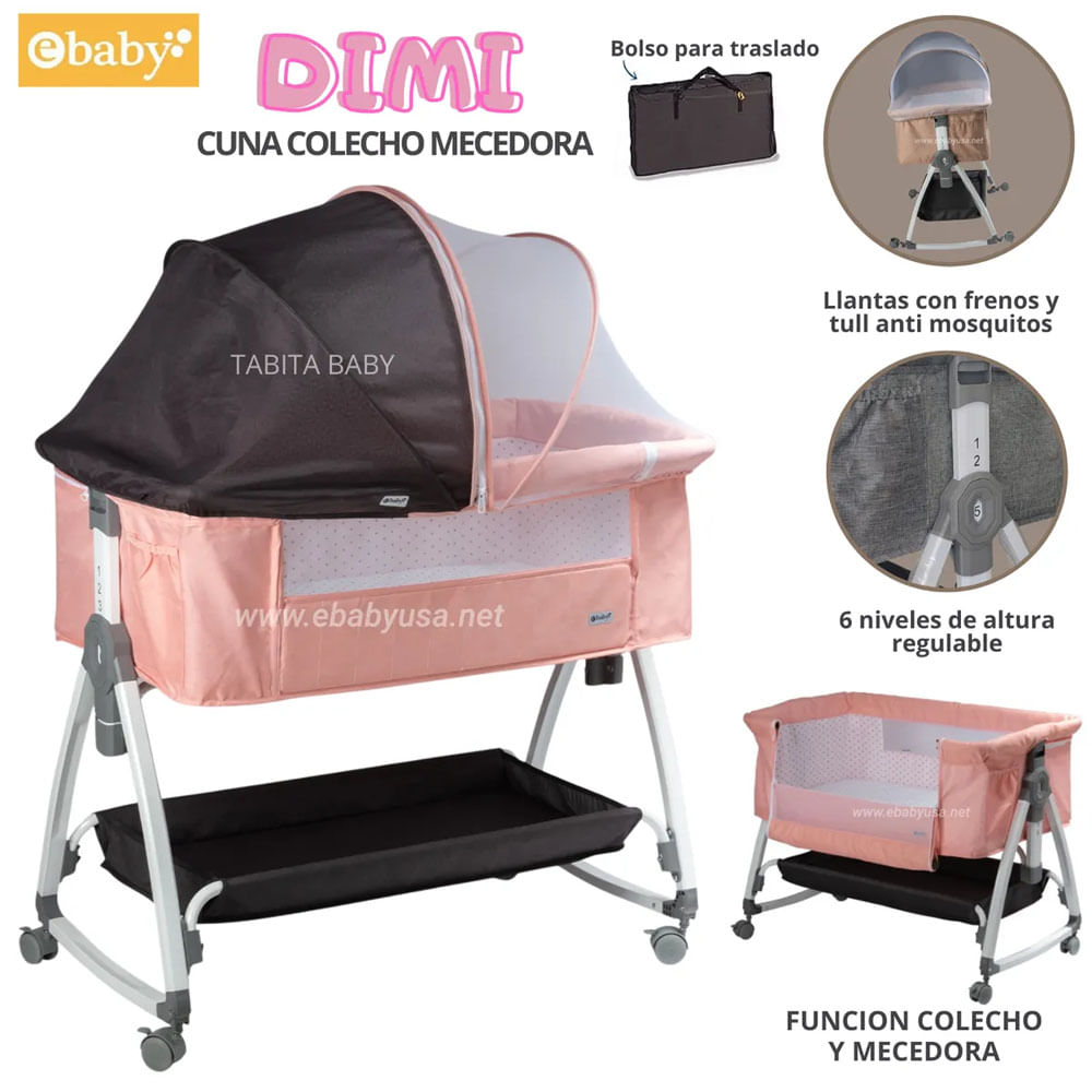 Cuna Colecho con Mecedora y Mosquitero DIMI Rosado
