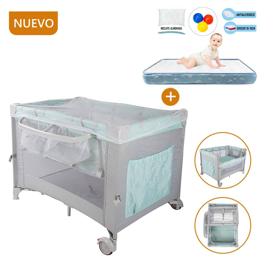 Cuna Corral Always Together Infanti Menta - Colchón Celeste
