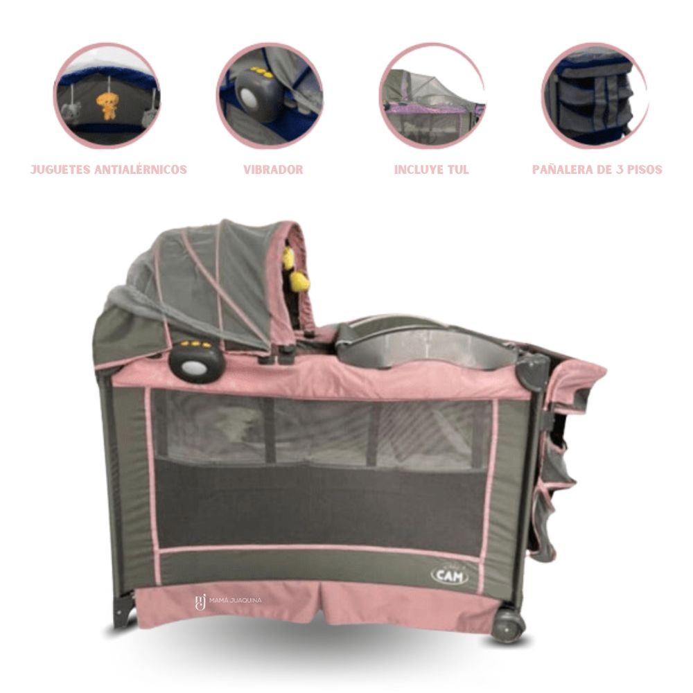 Cuna Corral Mecedora Baby Cam Turing Rosado