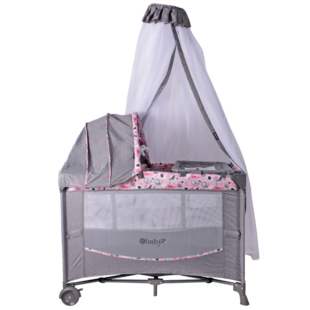 | Características | Cuna función mecedora. Cuna función colecho. Medidas producto armado: 110 x 78 x 76 cm. Cuenta con 3 niveles para acomodar a tu bebé como más te guste. El material del tapizado de la cuna corral es de poliéster. Trae mosquitero. Capota con Toys (peluches). Cuenta con 2 ruedas con freno. Incluye cambiador. Soporte para malla mosquitera. Bolsillo lateral. Edad de uso: Cuna (0 meses a 6 meses) / Corral ( 6 meses a 3 años) . Incluye bolsa para viaje. |