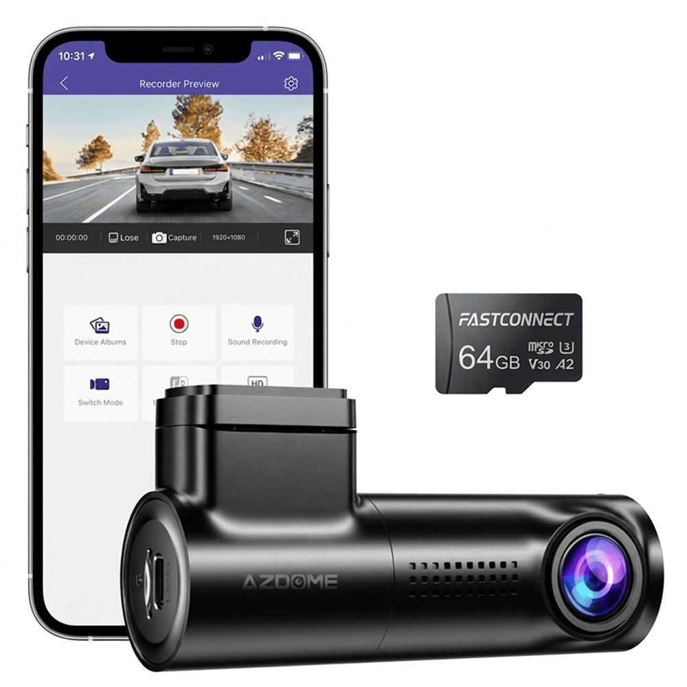 DASHCAM AZDOME M330 1080P WiFi más Micro SD 64GB