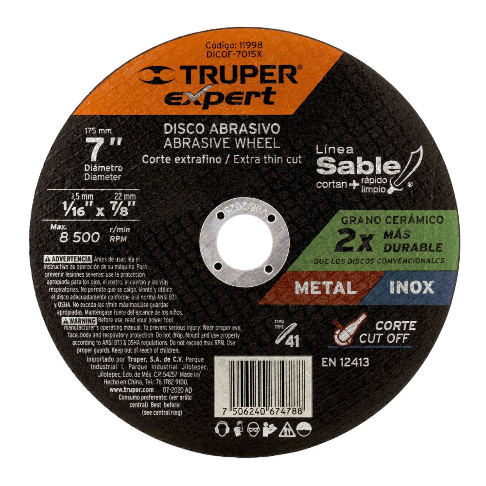 Disco de corte metálico 7" x 1.5 mm, truper Expert