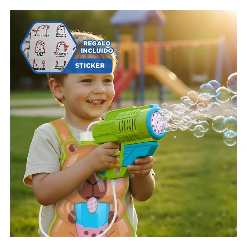 Dispositivo de Burbujas con Mochila Portatil Figura Animal Verde Claro Y+Regalo Sticker