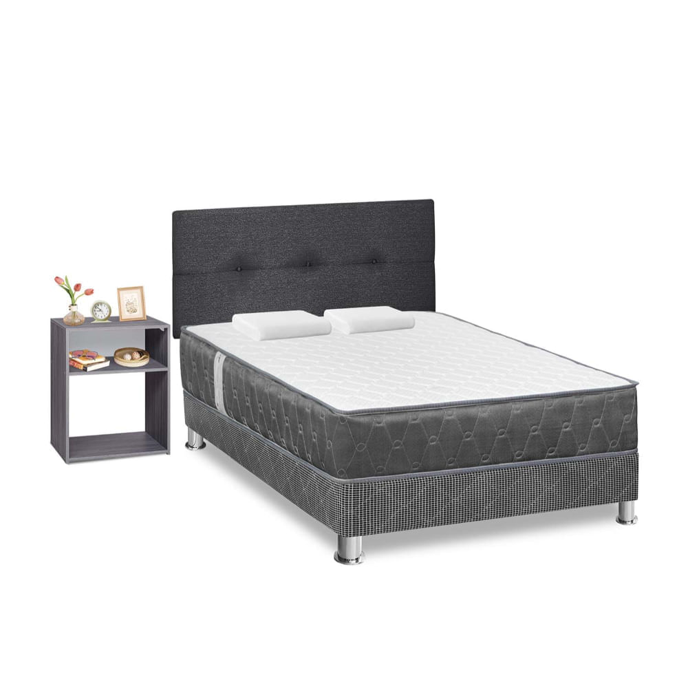 Dormitorio Acqua 2 Plazas + Velador Turin Plomo + Respaldo