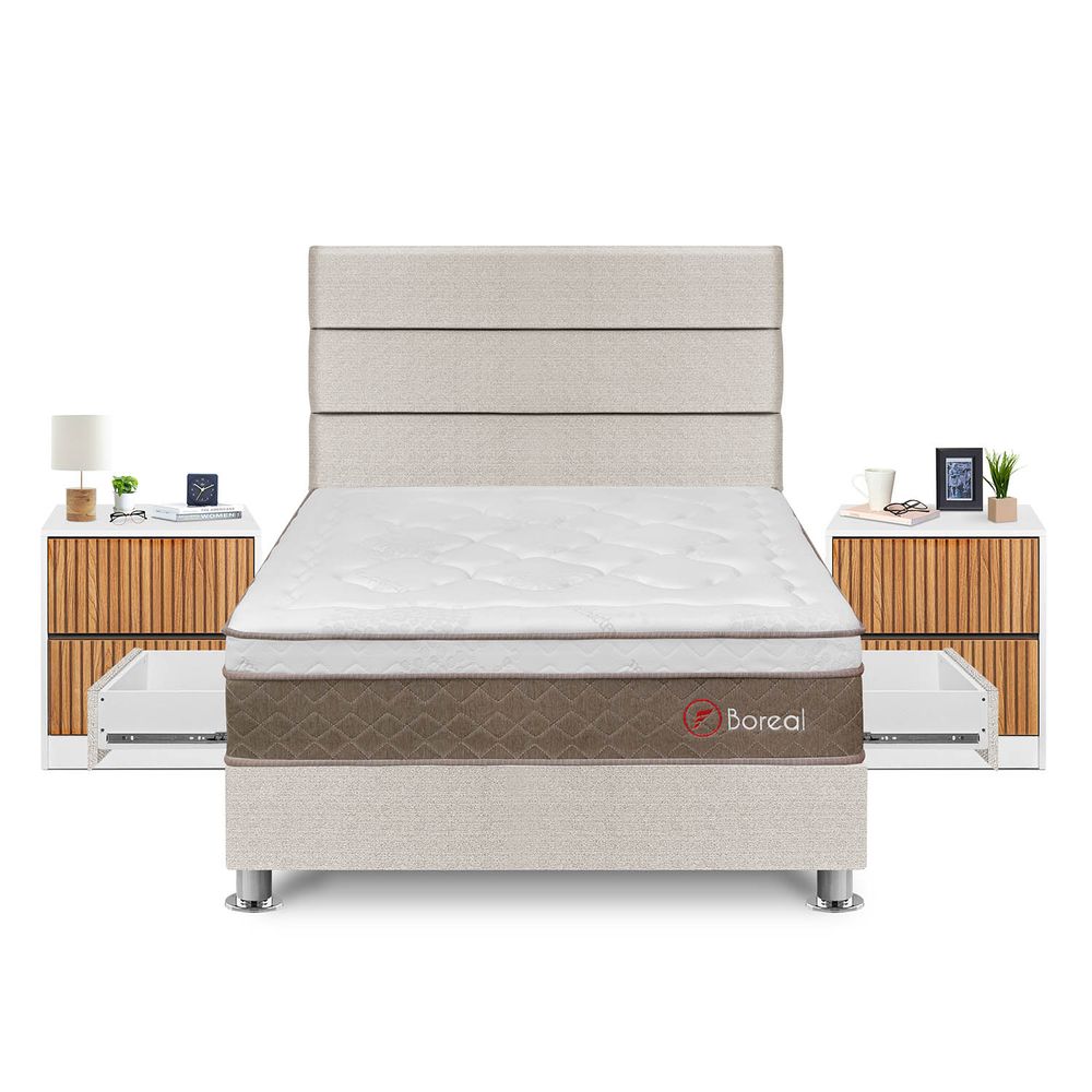 Dormitorio Boreal Con 4 Cajones 2 Plazas + Velador Roma + Respaldo Beige